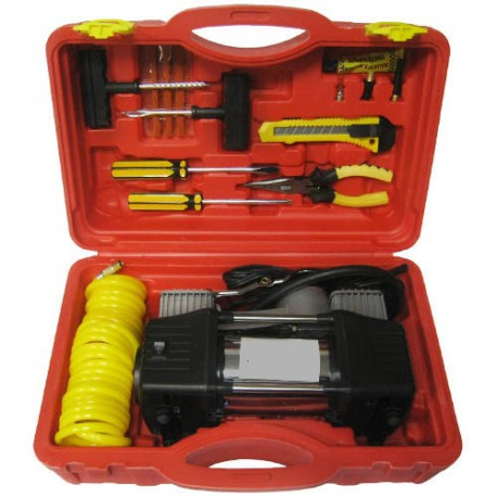 اقلام همراه: 2عدد پیچ گوشتی،کاتر،دمباریک،وصله پنچری،اهرم پنچرگیری،چسب،نازل باد،شلنگ باد،